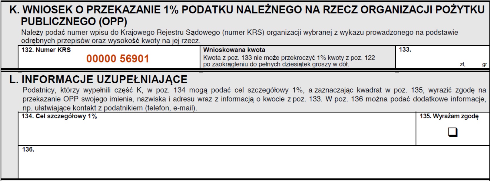 Przekaż 1% podatku uzupełniając w odpowiednich rubrykach formularza PIT następujące dane: